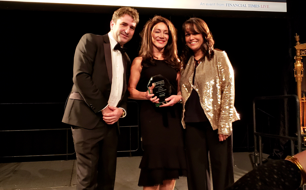 Osler National Co-Chair Dale Ponder, centre, receives her Canadian Legal Leader of the Year award at the Financial Times Innovative Lawyer Awards 2018. (Photo courtesy of Sonia Bjorkquist)
